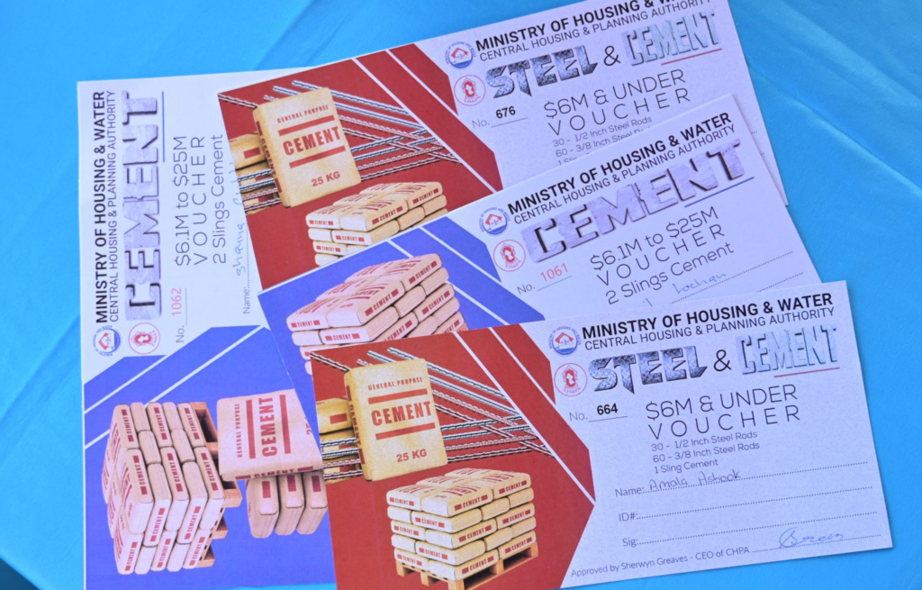 Under the subsidy program, individuals constructing homes valued at $6 million or below receive one sling each of cement and steel, while those building homes valued between $6 million and $25 million receive two slings of cement.