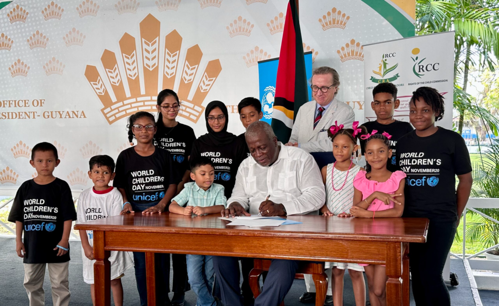 The signing ceremony, held on World Children’s Day, marks Guyana’s entry among the 42 countries advocating for children’s rights and climate action.