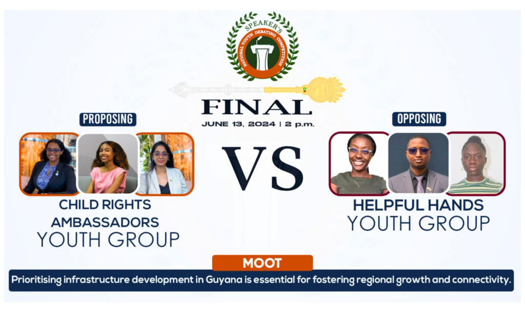 The moot for the final debate was: “Prioritizing infrastructure development in Guyana is essential for fostering regional growth and connectivity.”