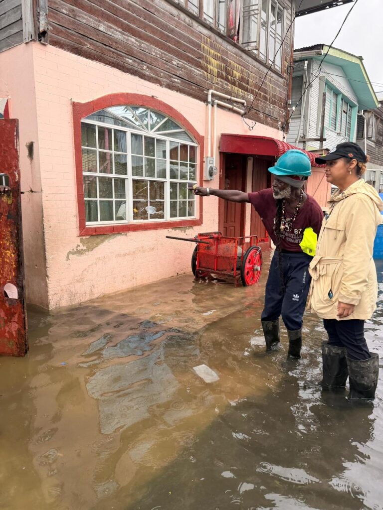 The Minister’s walkthrough included communities in Bagotstown, Region Three, North and South Ruimveldt, Albouystown, Norton Street, Bent Street, Kingston, and the Koker area. At each location, she examined the extent of flooding, assessed drainage systems, and consulted with local officials and residents.