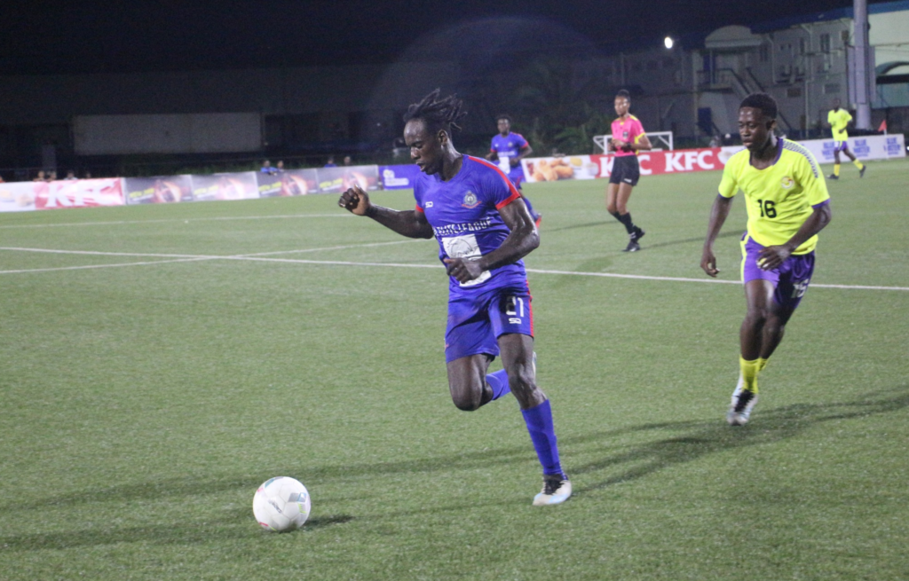 Neron Barrow’s impressive second-half hat-trick led Police FC to a 3-0 victory over Monedderlust FC in the latest match of the KFC Elite League Season Six at the Guyana Football Federation’s National Training Center, Providence.