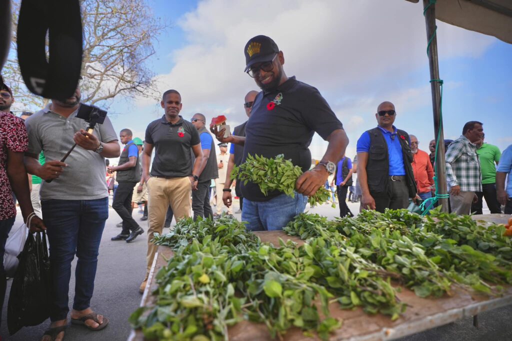 During his Saturday morning tour of the Farmers’ Market, President Dr. Irfaan Ali engaged with local farmers, vendors, and visitors, expressing appreciation for the vibrant market atmosphere.