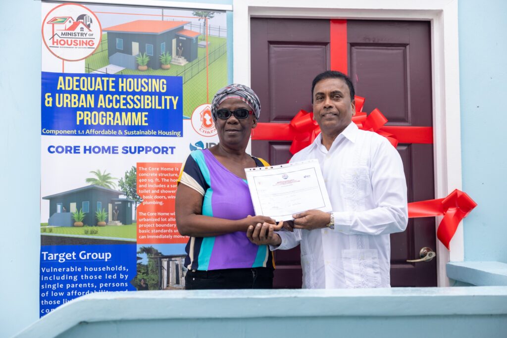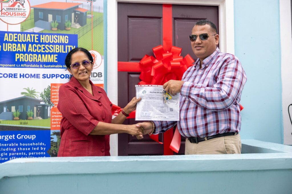 According to the Central Housing & Planning Authority, Ms. Gobin was among 18 families from the East Bank and West Bank of Demerara who received homes through the programme, which is being implemented through a partnership between the Government of Guyana and the Inter-American Development Bank (IDB), earlier today.